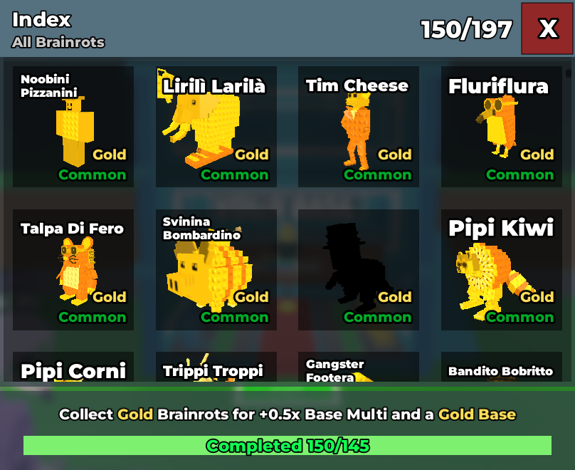 🏆 Servicio de Desbloqueo de Base Dorada – Índice Completo 170/170 Gold Brainrot